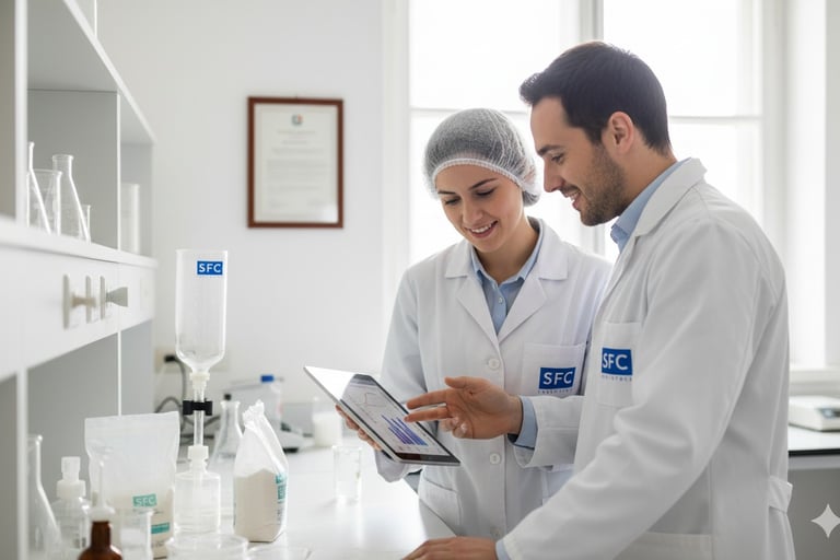 La confianza es nuestro ingrediente más importante. Operamos bajo un principio de transparencia total en cada etapa: desde la selección y trazabilidad de las materias primas hasta el control de costos y los tiempos de entrega. En SFC, no hay 'cajas negras'. Nuestros clientes tienen visibilidad completa del proceso, asegurando no solo la confidencialidad de su fórmula, sino también la integridad ética de nuestra colaboración